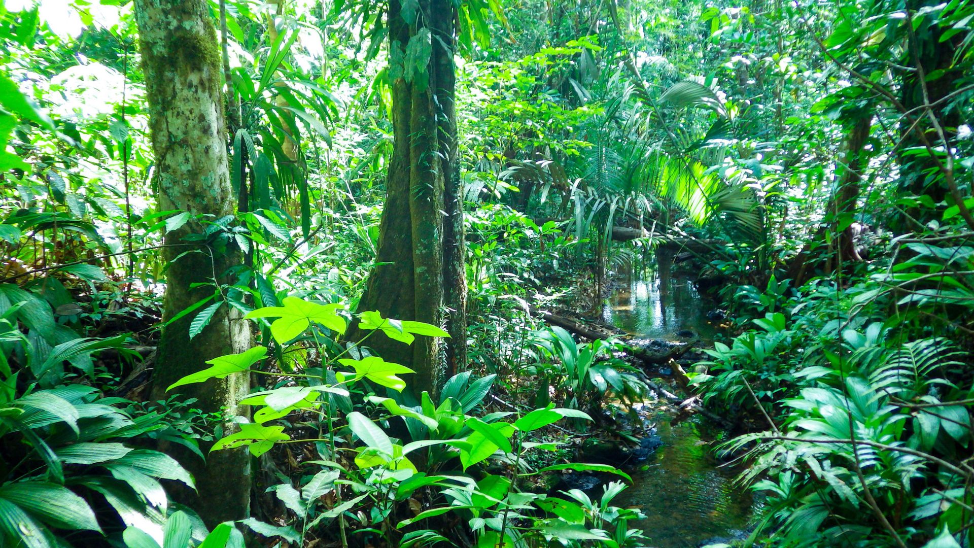 坐在充滿生命力的熱帶森林裡,