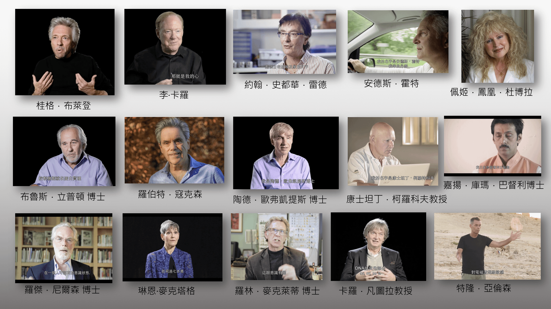 這幾位科學家與專家在各自的領域都是開創性的人物,代表科學與靈性,這兩個看似衝突的領域,可以在無邊無際的“同一場域”,超越時空,與我們相遇。