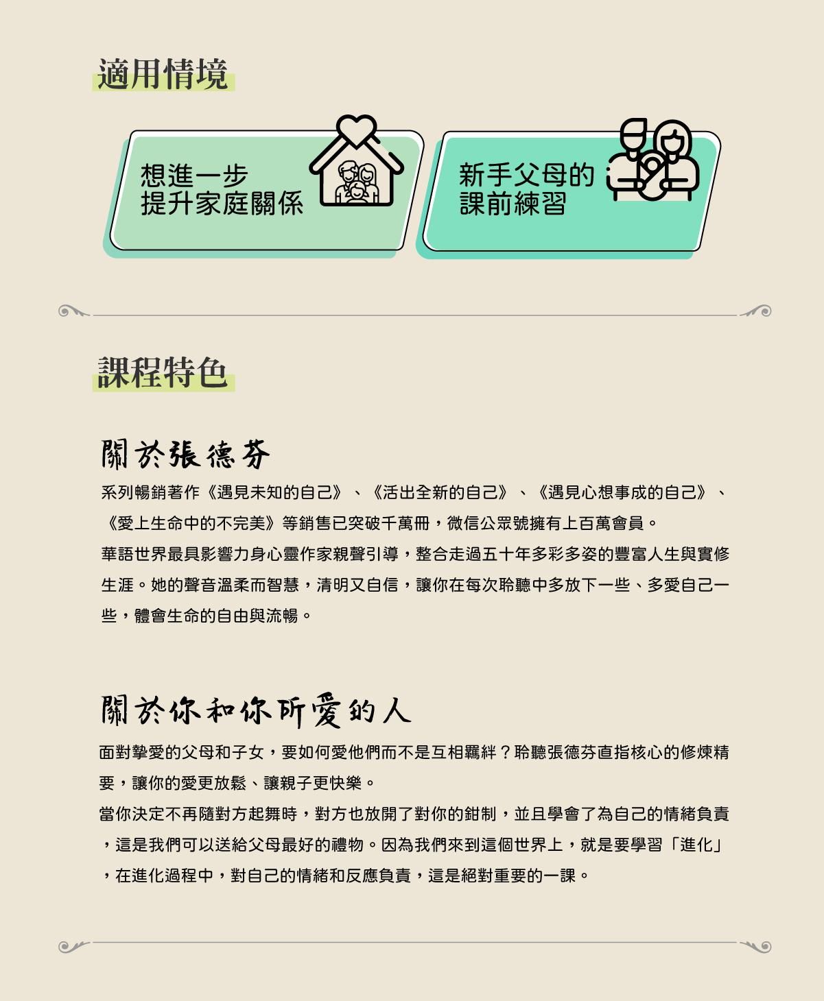 創立微信公眾號「張德芬」,擁有近二百萬會員,為華語世界最具影響力的自我成長社群。