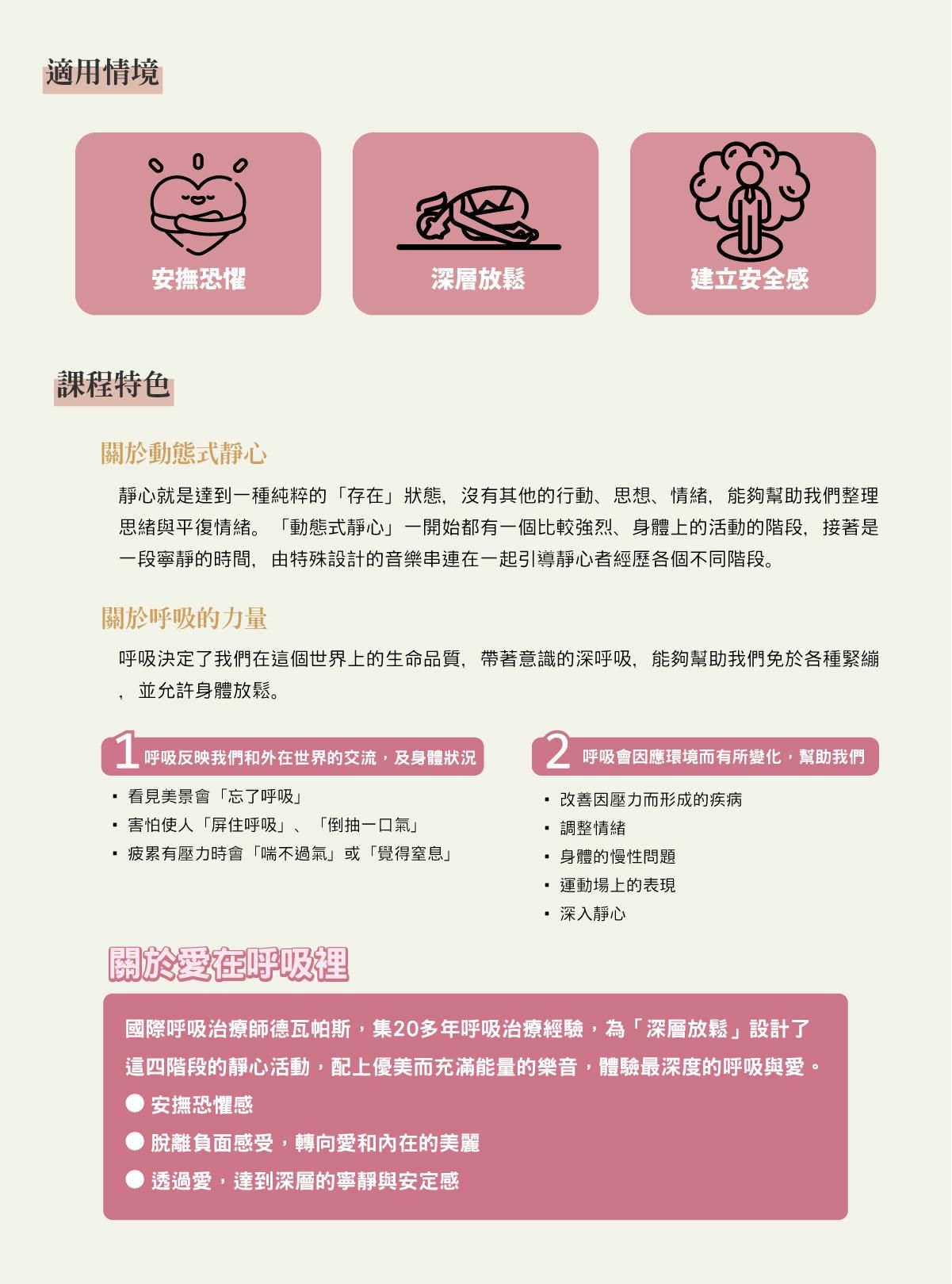 樂音與深度放鬆的呼吸同頻,使腦波深層放鬆,感受內在的愛與寧靜