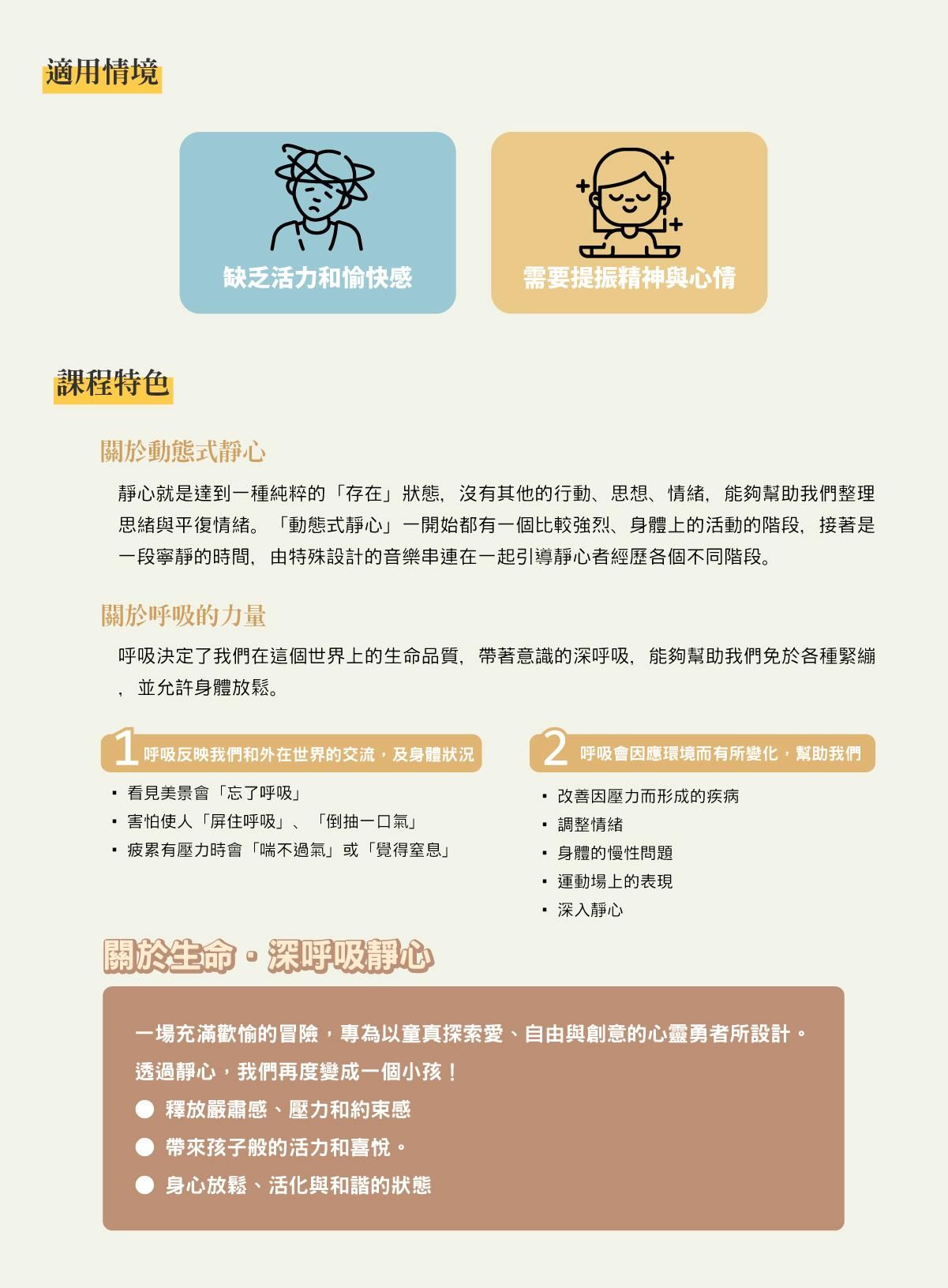 1.本課程並無法取代其他專業的醫療法,若患有心臟病、憂鬱症等,請先請教專業醫生
