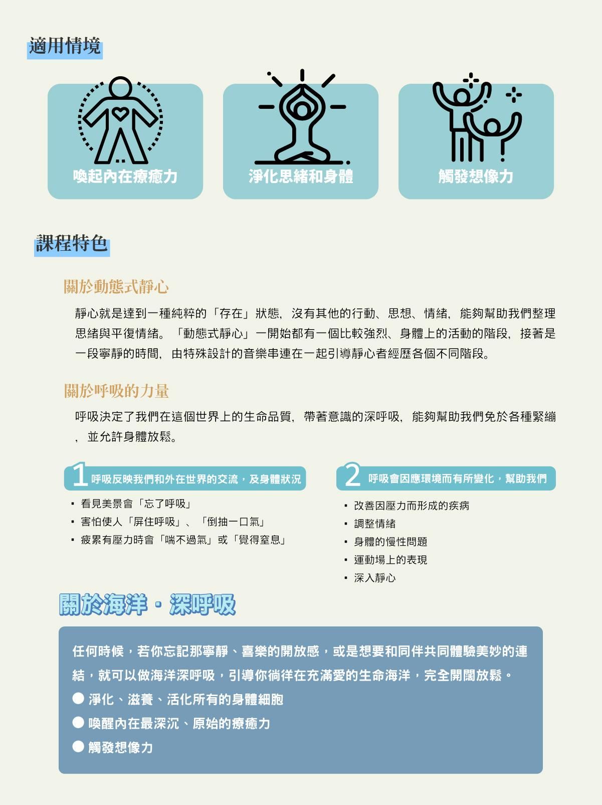 1.本課程並無法取代其他專業的醫療法,若患有心臟病、憂鬱症等,請先請教專業醫生